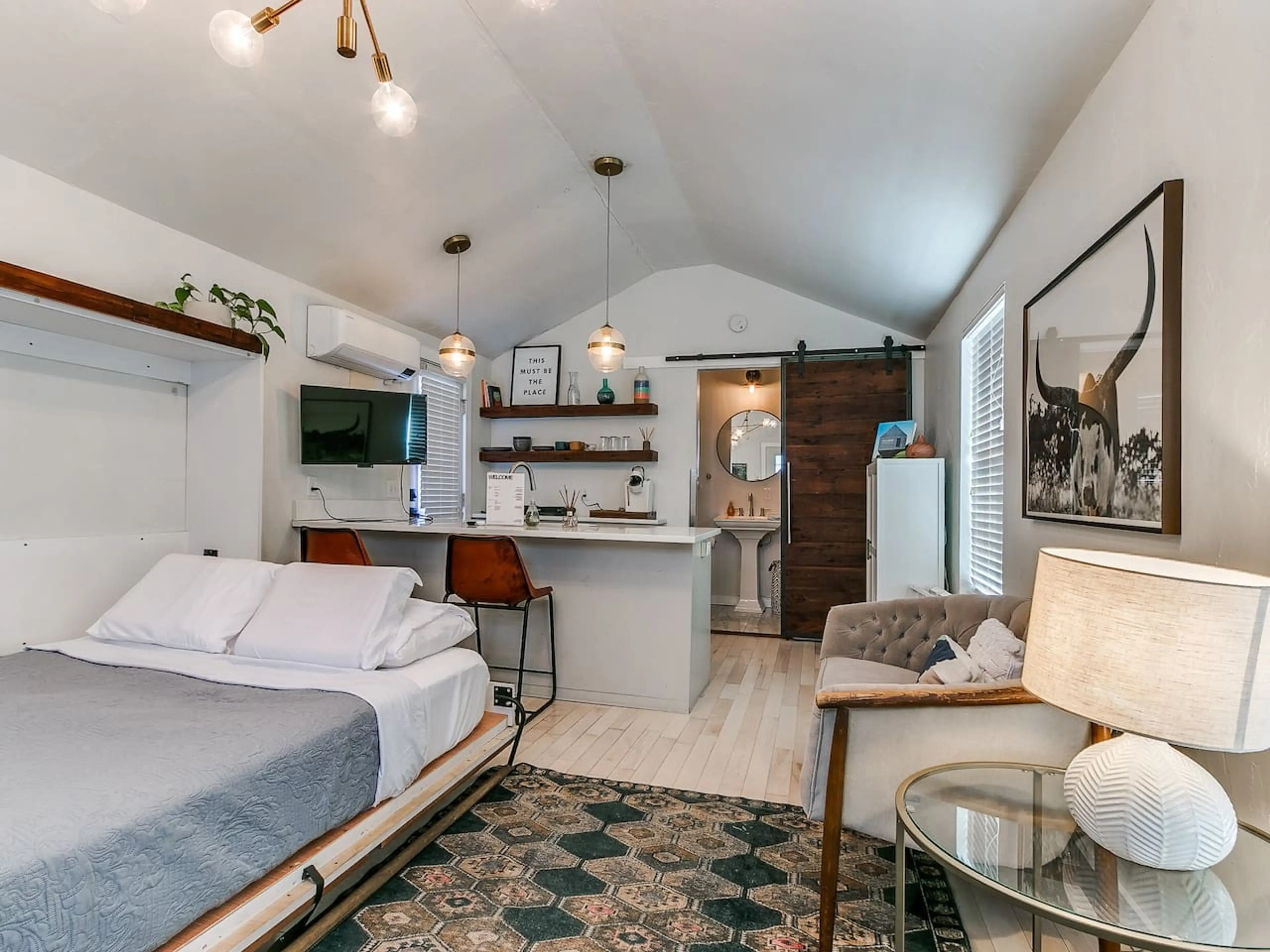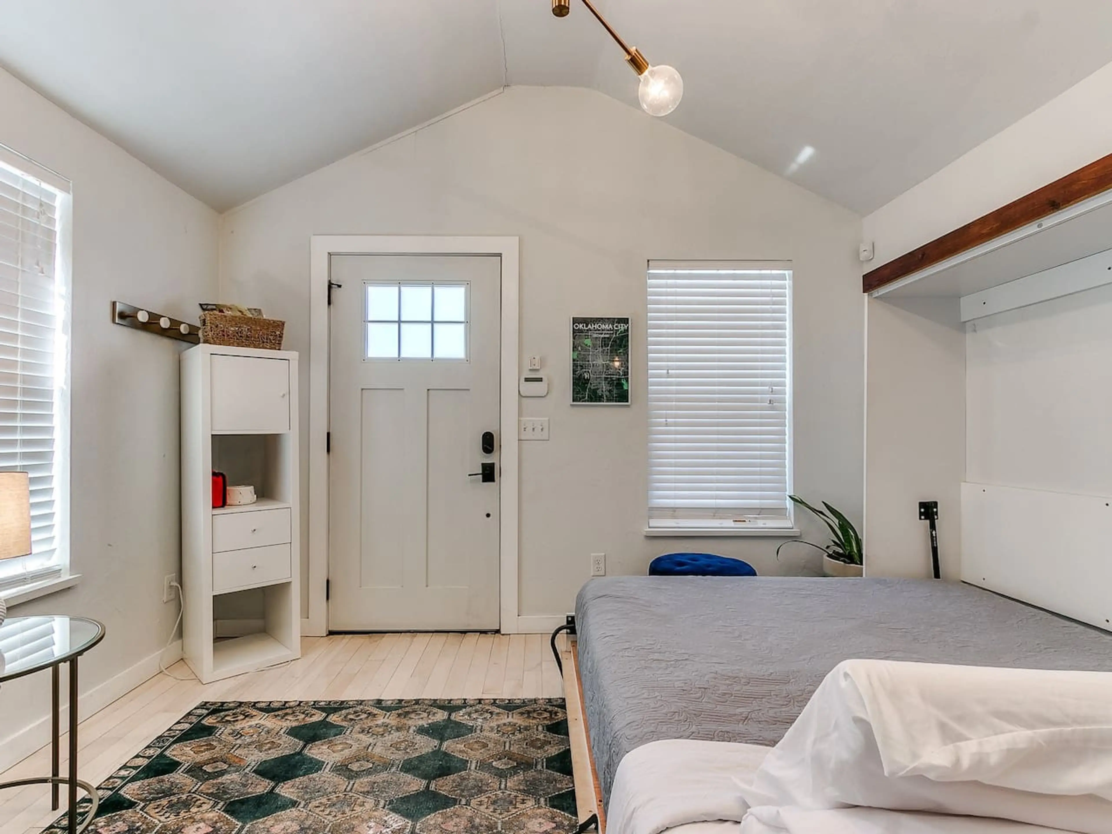 Escape the hustle and bustle and enjoy a unique stay in this charming tiny home! This compact and efficient space is perfect for solo travelers or couples looking for a cozy getaway in Oklahoma City. Take it easy at this unique and tranquil getaway. Ideal for those seeking a minimalistic, no-fuss ex...